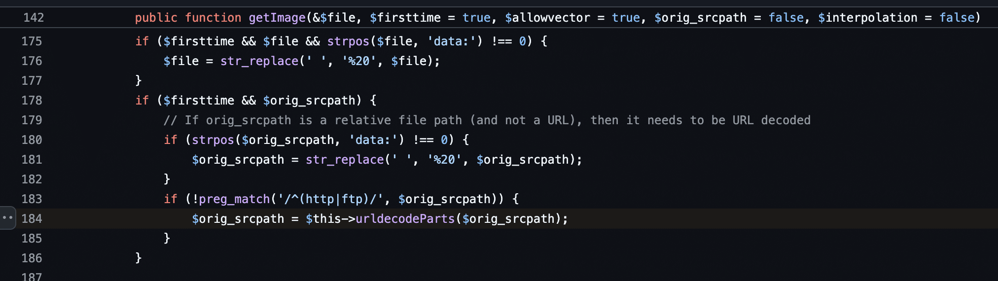 In applying the CTF solution to osTicket, the first obstacle we hit was that osTicket was using a really old version of mPDF from circa 2019. The normalization bypass from the web2pdf challenge simply wasn’t present in the version of mPDF embedded in osTicket.
