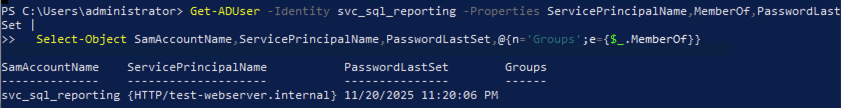 svc_sql_reporting CN=Domain Users,CN=Users,DC=north,DC=sevenkingdoms,DC=local 2025-11-20 23:20:06.000000 2025-11-21 15:04:11.000000 <no>