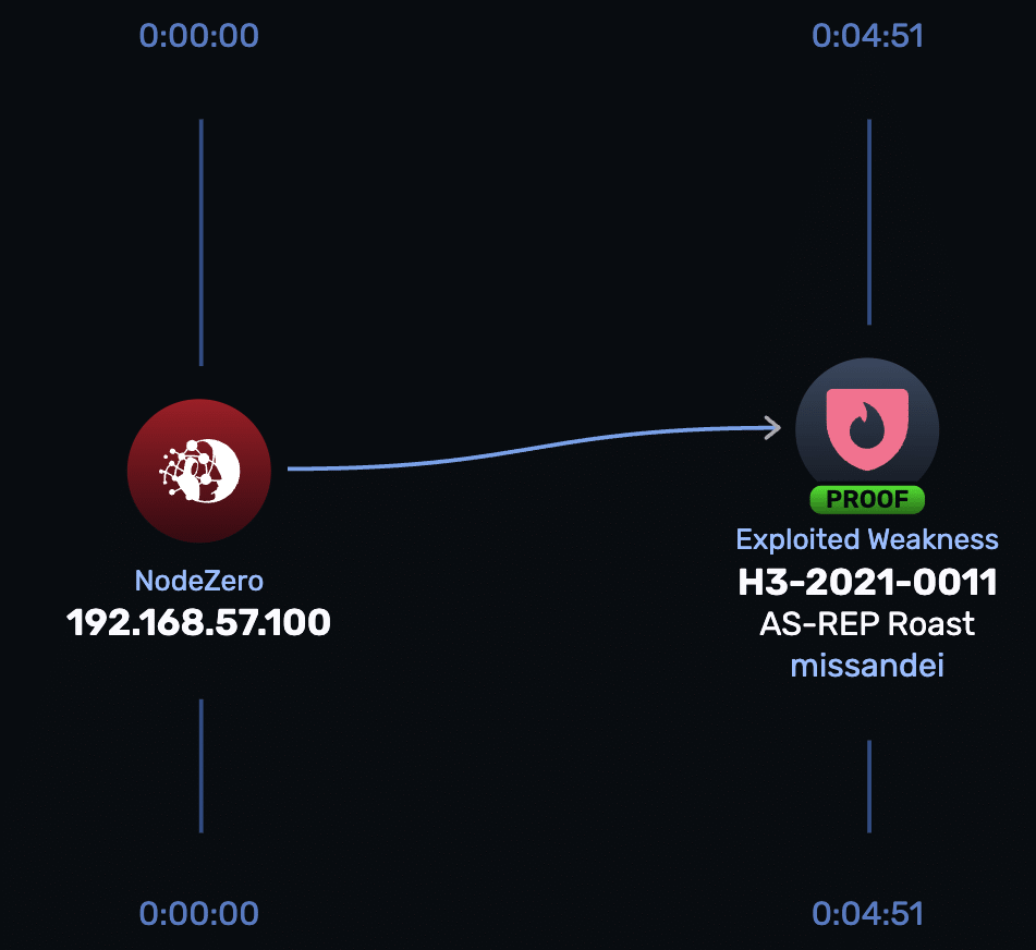 missandeihas Kerberos pre-authentication disabled, NodeZero requests an Authentication Service reply (AS-REP) without presenting credentials and captures the hash for offline cracking.