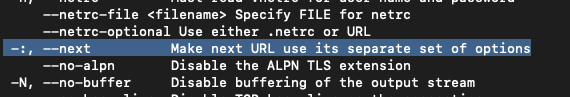 But, there is also another obscure feature and flag available for curl. The --next flag. The next flag allows you to chain multiple curl requests within the context of a single execution of curl.