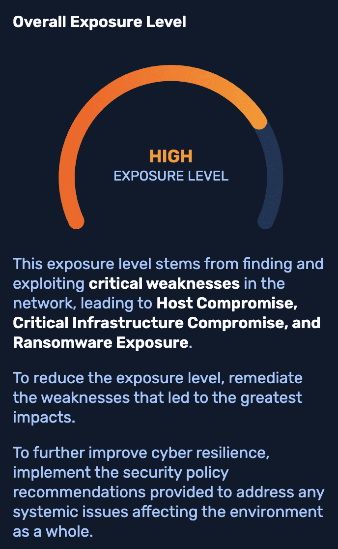 Their overall Exposure Level was High due to NodeZero exploiting critical weaknesses in the network, leading to: