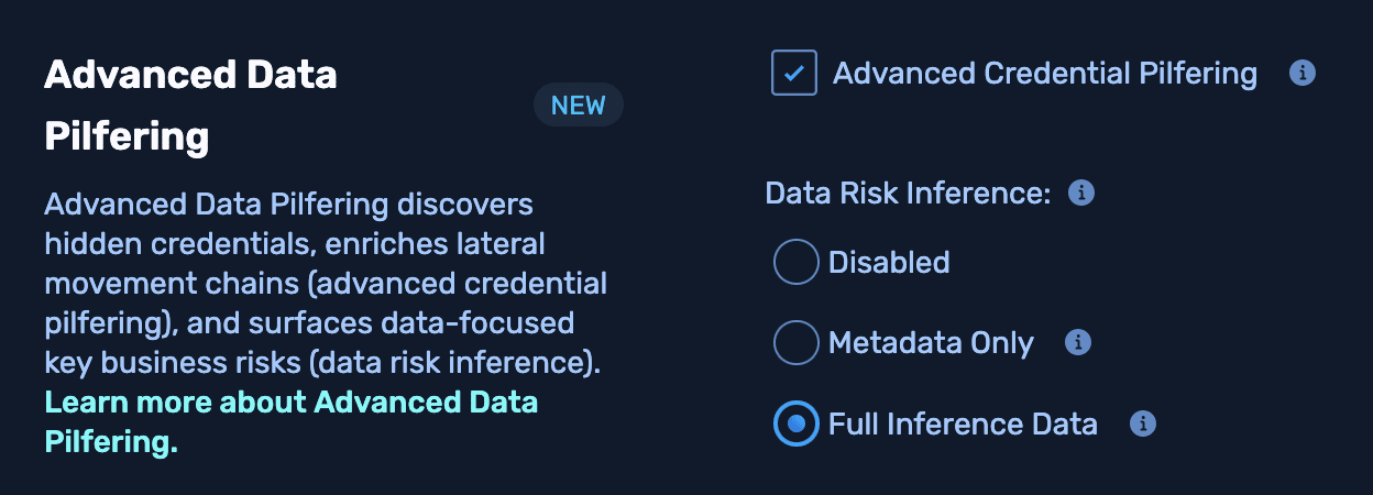 - Data Risk Inference: This feature can be configured in one of three modes: