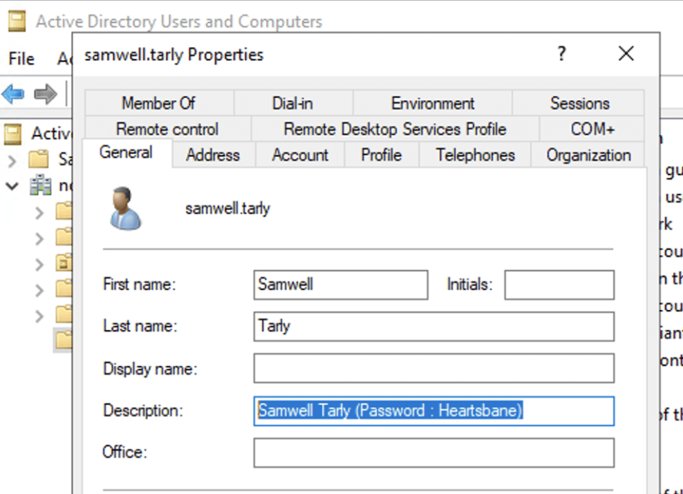 But regex has its limit. As an example, let’s say we modify the GOAD setup to put only the password by itself in the Description field like this: