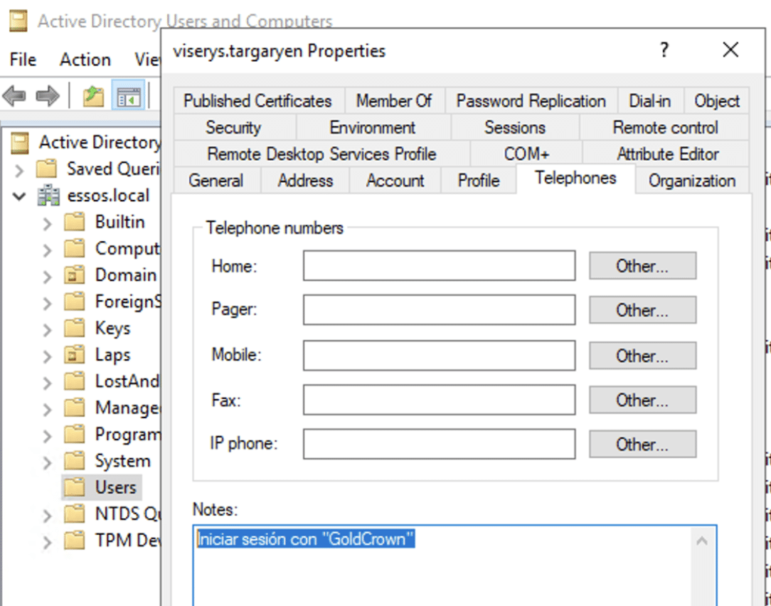 And to go further, let’s set up another user viserys.targaryen in a different domain with their password in their Notes field, enclosed in Spanish text.
