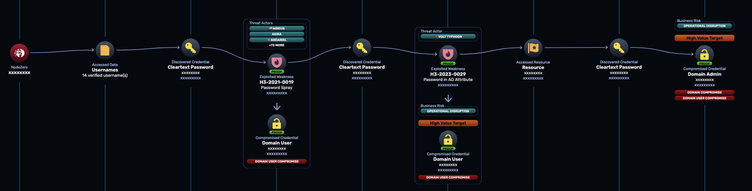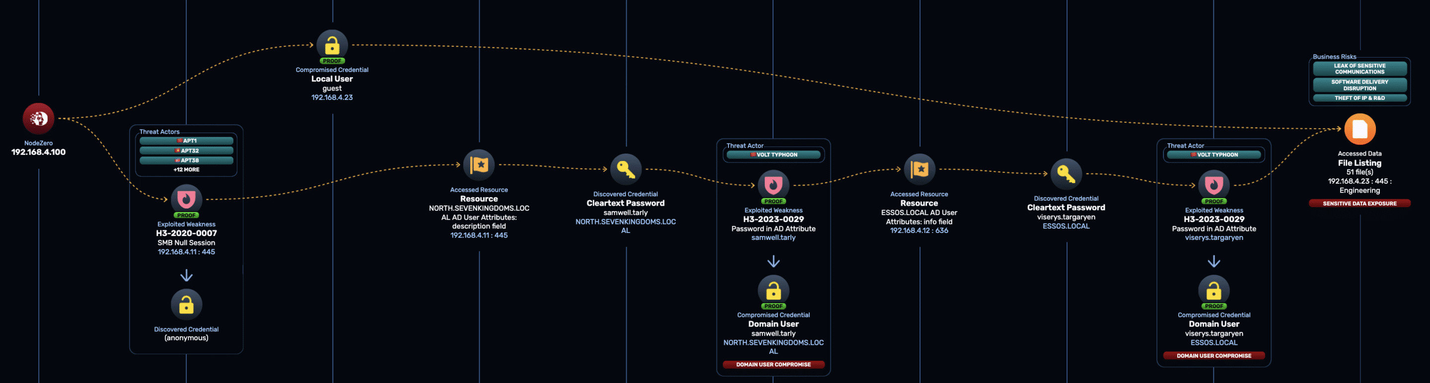 With Advanced Data Pilfering, NodeZero can extract both credentials and chain them into a full attack, as shown below:
